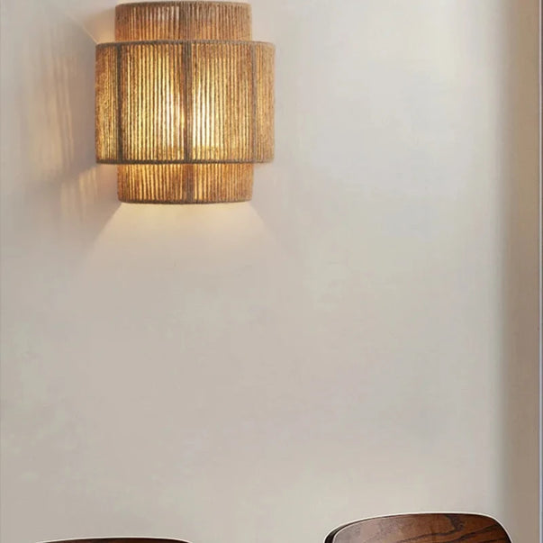 ๐พ Retro Rattan Weaving Wall Lamp โ Handwoven Hemp Rope Sconce with Soft LED Glow for Bedroom & Living Spaces โจ