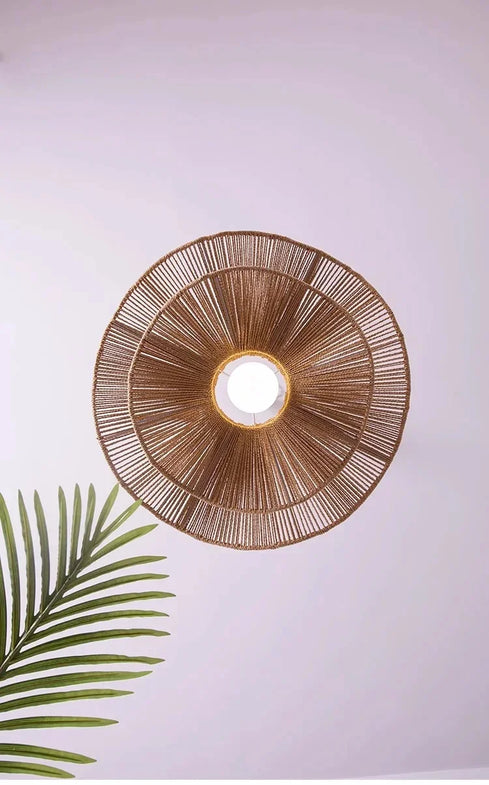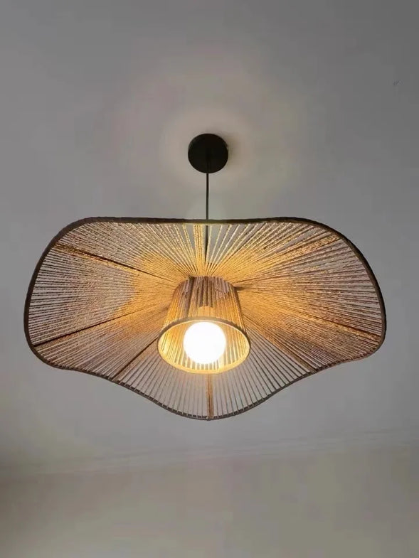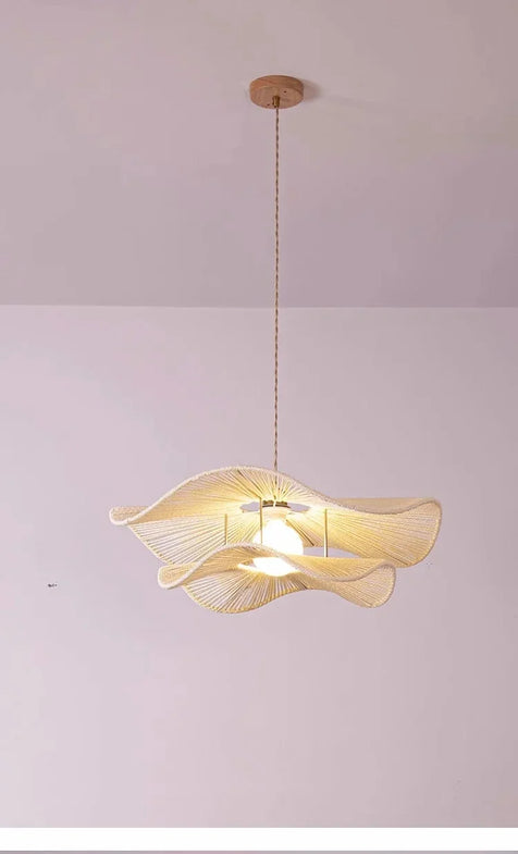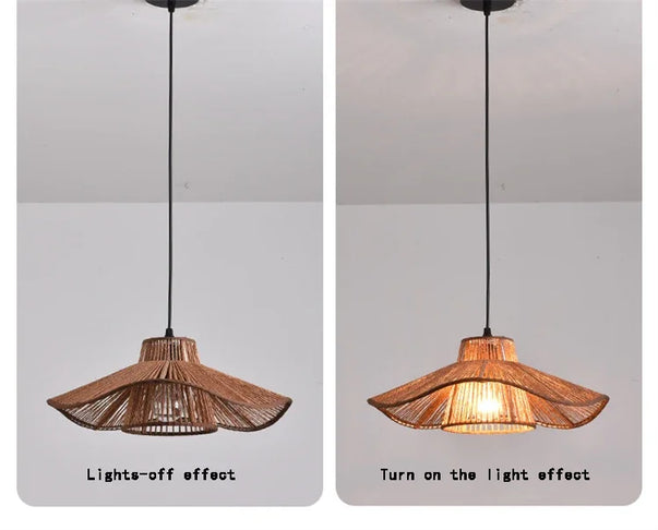🌸 Wabi Sabi Rattan Flower Pendant Lamp – Minimalist Hemp Rope Ceiling Light for Bedroom, Dining & Café Decor ✨