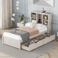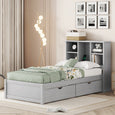 โœจ Modern Twin Bed with USB Port & Storage Drawers | Smart Bed Frame with Bookcase Headboard โ€“ Grey ๏ธโšก