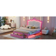 Full-Size Princess Upholstered Bed with LED Lights | Modern Pink & White Bed Frame with Crown Headboard & Drawers โจ