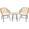 ☀️ Golden Hour Rattan Bistro Set — 3-Piece Handwoven Outdoor Lounge with Cream Cushions & Glass-Top Table ☕🌿