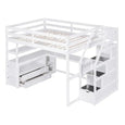 โจ Full-Size Loft Bed with Built-in Desk, Storage Shelves & Staircase Drawers | Space-Saving Study & Sleep Station โ White ๏ธ