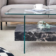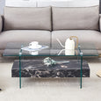 43.3 Inch Modern Glass & Black Marble Coffee Table โ Two-Tier Living Room Center Table with Storage โจ