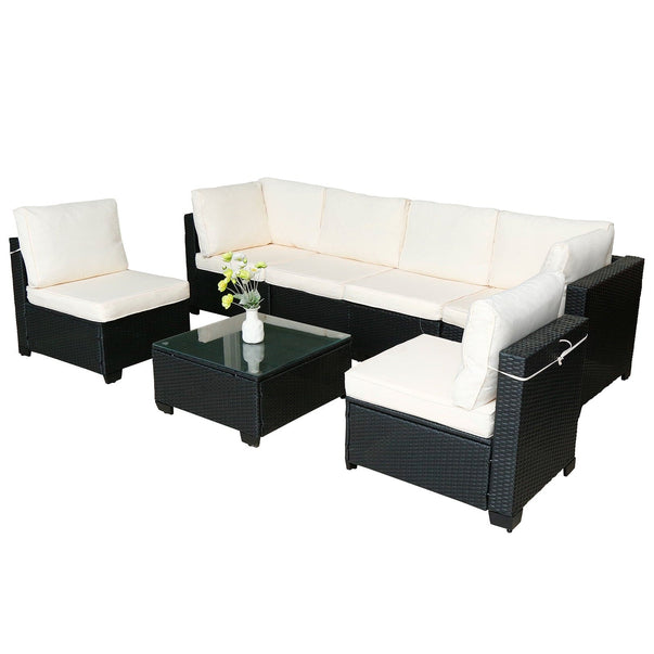 ๐ค Urban Luxe 7-Piece Rattan Sofa Set โ Modular Outdoor & Indoor Lounge with Premium Black Weave & Ivory Cushions โโจ