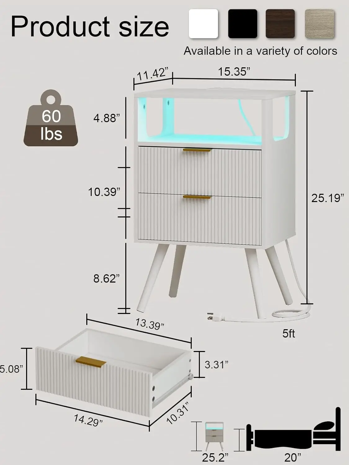 • Drawer capacity: fits books, journals, chargers, skincare bottles, remote controllers