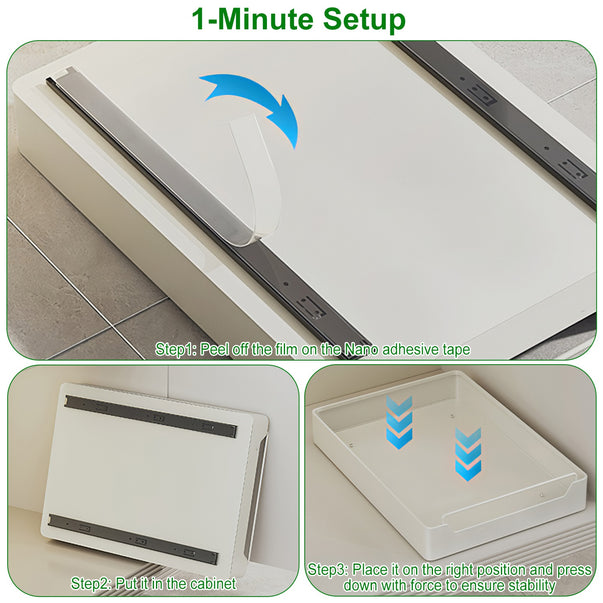 Smooth-gliding drawers slide out quietly and effortlessly, giving you instant access to bottles, jars, cleaners, snacks, towels, or supplies — even at the back of the cabinet.