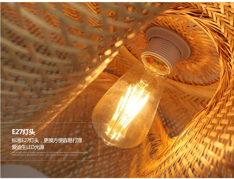 🌾 Handwoven Bamboo Rattan Pendant Lamp – Japanese Style Ceiling Light with Natural Wicker Shade for Bedroom, Dining & Living Spaces ✨