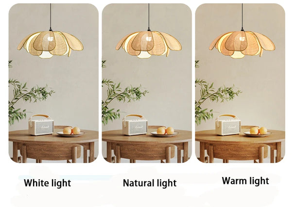 ๐ธ Handwoven Rattan Petal Pendant Light โ Japanese Retro Chandelier for Dining & Living Room Serenity ๐ฟโจ